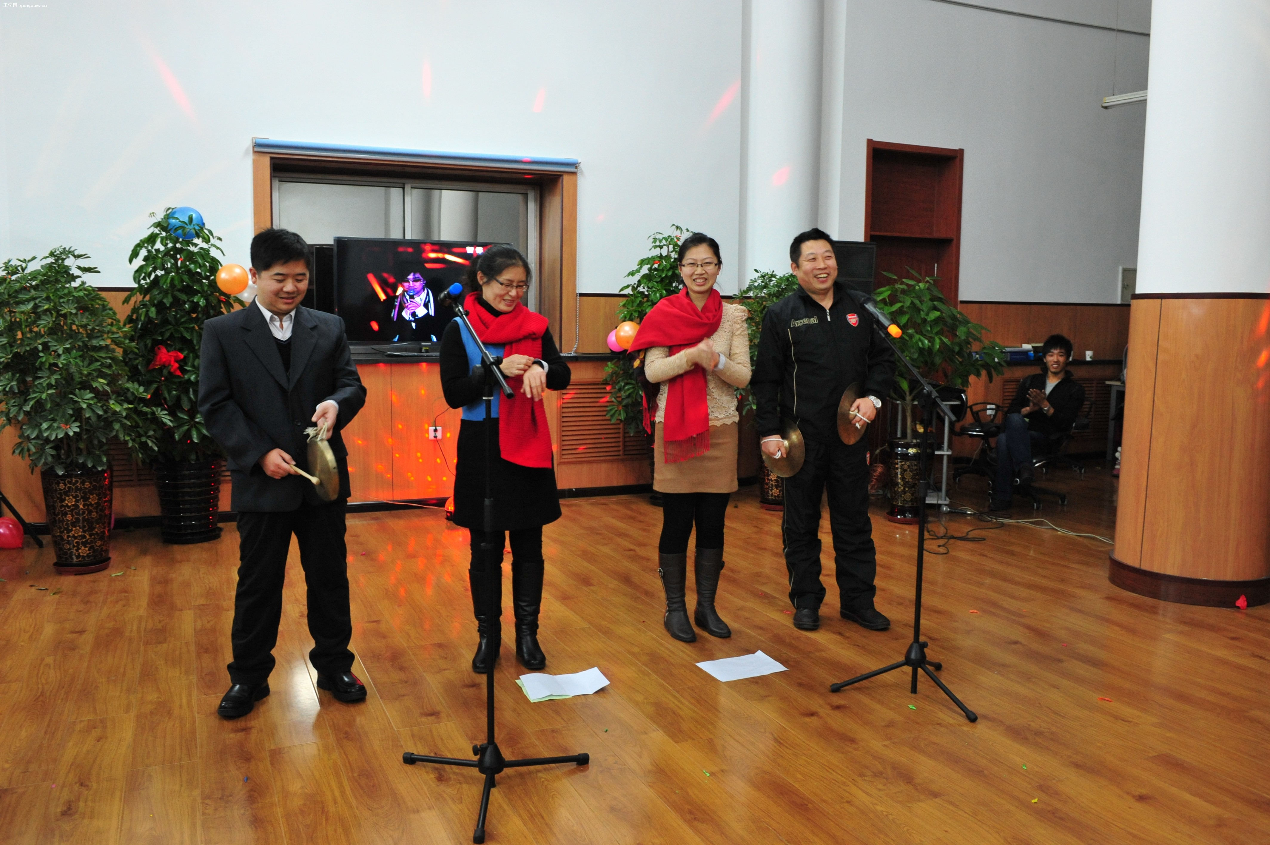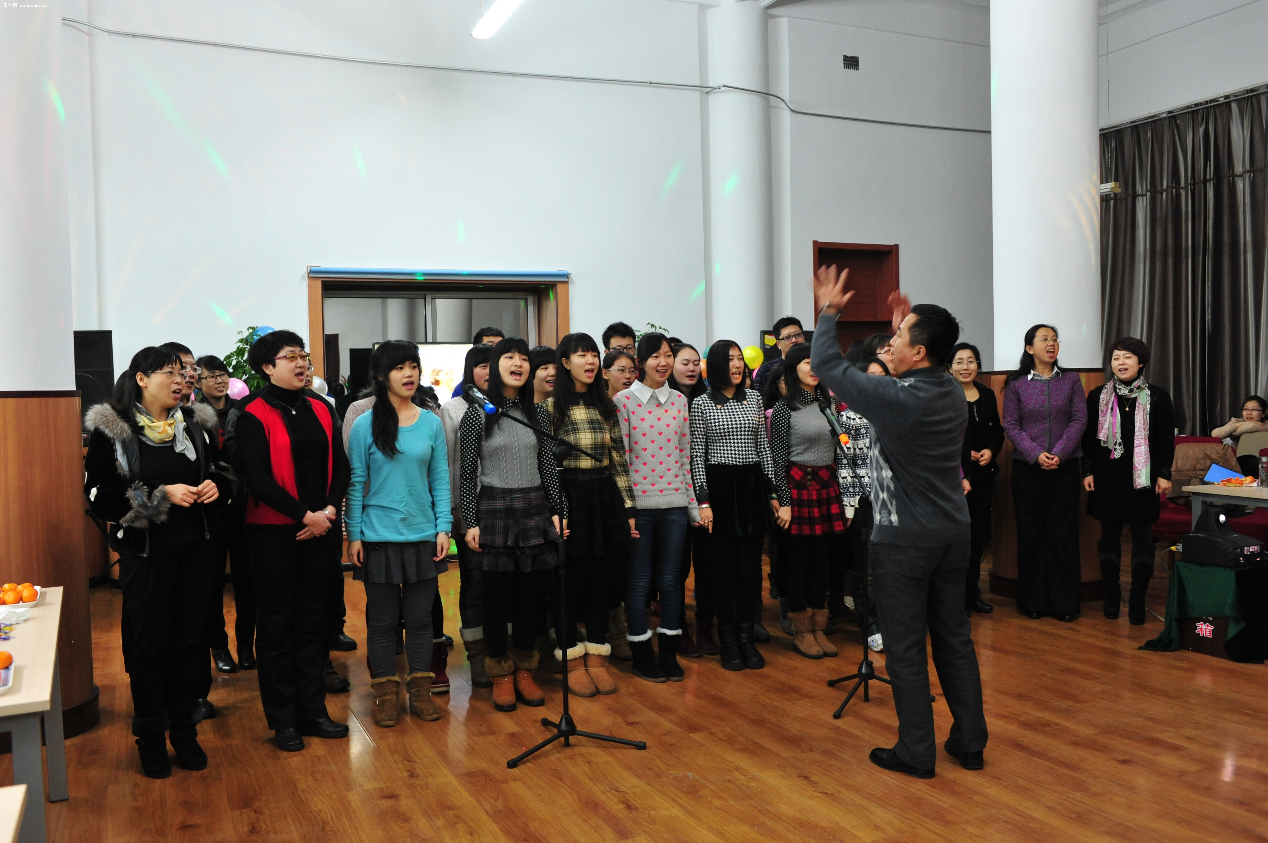 12月28日晚,思政教研部在五楼资料信息中心举办了迎新年师生联欢会。上百名师生欢聚一堂,载歌载舞,在祥和欢乐的气氛中迎接2013年的到来,欢庆2012年师生们在学科建设、专业建设、党的建设、科学研究等工作中取得优异成绩。