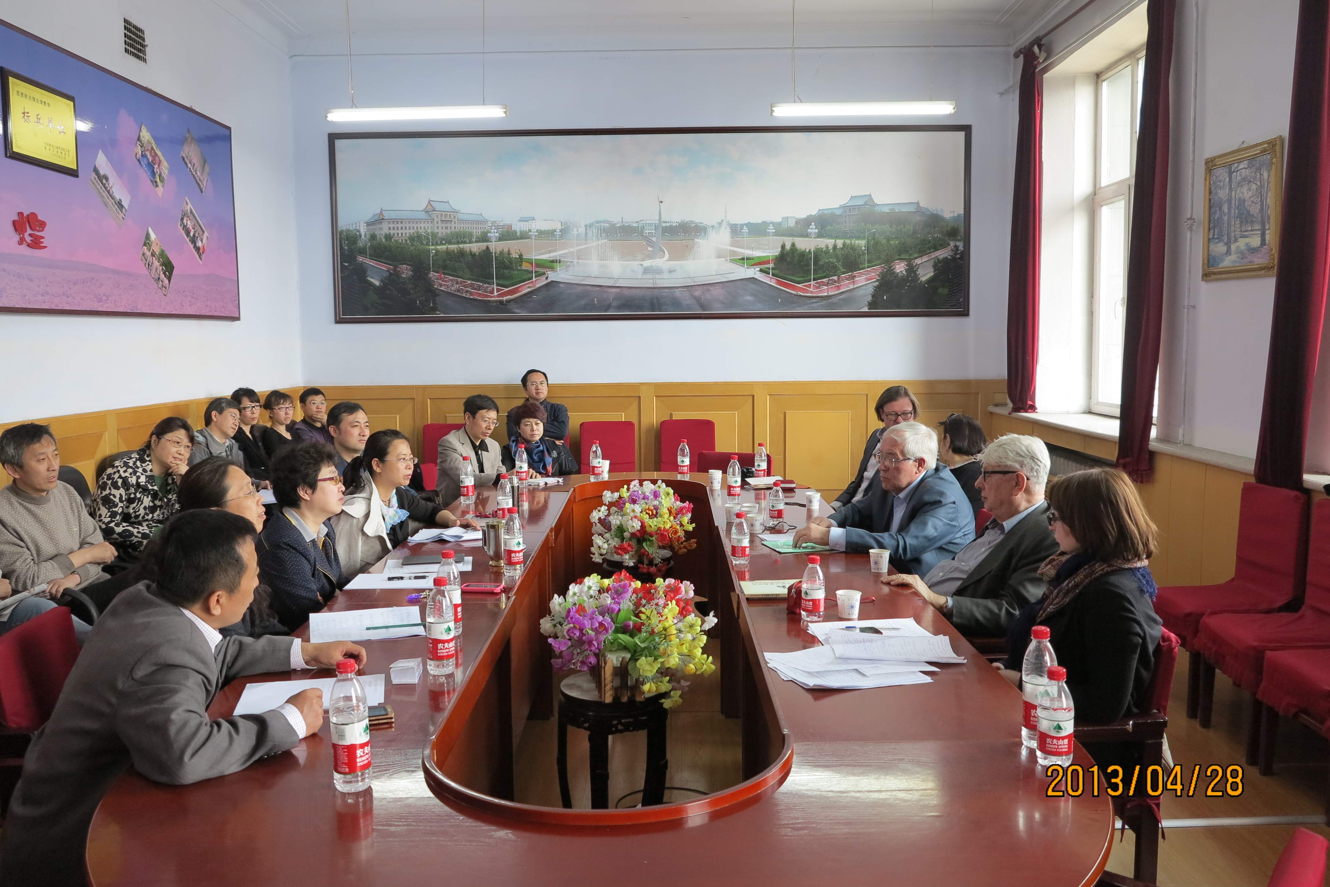 4月28日俄罗斯科学院著名汉学家布罗夫教授和哲学家舍甫琴科教授一行5人来我部进行学术交流。俄罗斯科学院哲学研究所舍甫琴科教授做了题为《俄罗斯意识形态状况》的学术报告,报告中指出,目前俄罗斯各种思想观念、意识形态相互交织,如西方自由主义、俄罗斯民族主义、分裂主义、保守主义以及左派思想等,这些意识形态之间斗争十分激烈。这表明,当前俄罗斯社会最大的问题就是缺少共同的价值观,缺少统一的意识形态。报告结束后,我部教师就俄罗斯当代马克思主义的研究状况,苏联解体等问题与俄罗斯学者展开的热烈的交流。会后俄罗斯专家参观了校博物馆及文庙。