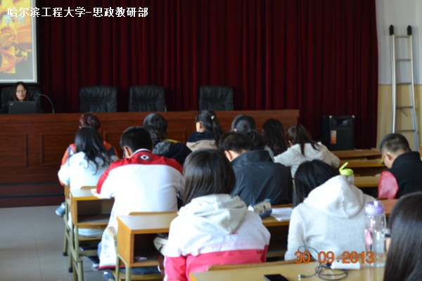 9月31日上午,哈尔滨工程大学思政部团委书记辛丽雯在41号楼专教给20132211班新生进行了第一次的思政部团课培训,2013级全体同学悉数参加了此次课程。
