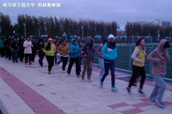 哈尔滨的天气渐渐变冷了,为了提高同学们的身体素质,增加御寒能力,思政部开展新生晨跑活动。由于哈尔滨的早晨特别寒冷,同学们特意穿上了厚实的衣裳参加到晨跑运动中来,保暖措施做的很好。
