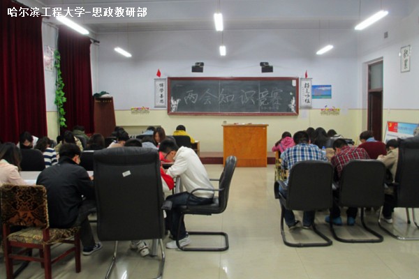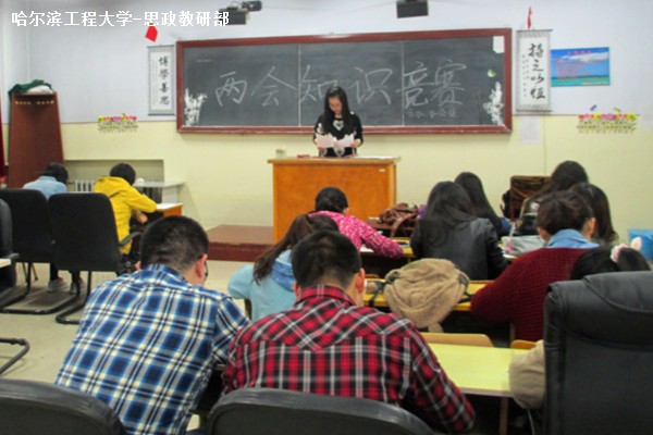 中共十八大及两会(全国人民代表大会和全国人民政治协商会议)已顺利闭幕,为响应党和国家的号召,加深对“两会”的认识,传达两次会议精神,学习会议的主要内容,心系祖国,关注社会动态,4月12日晚6时45分,思政部于41号楼学术报告厅举办主题为“聚焦两会,关注国是”的知识竞赛。此次竞赛由思政部学生会办公室主办,12、13级学生积极参与。
