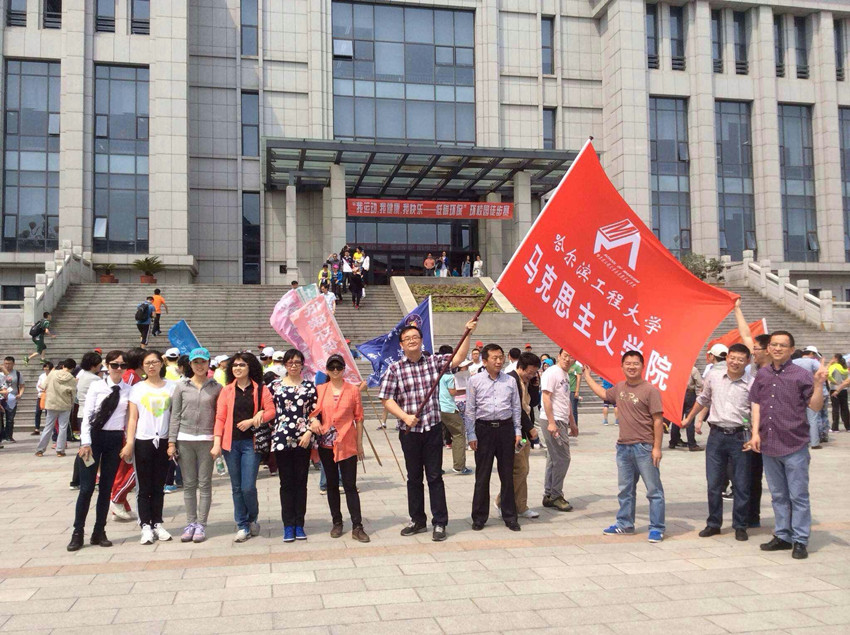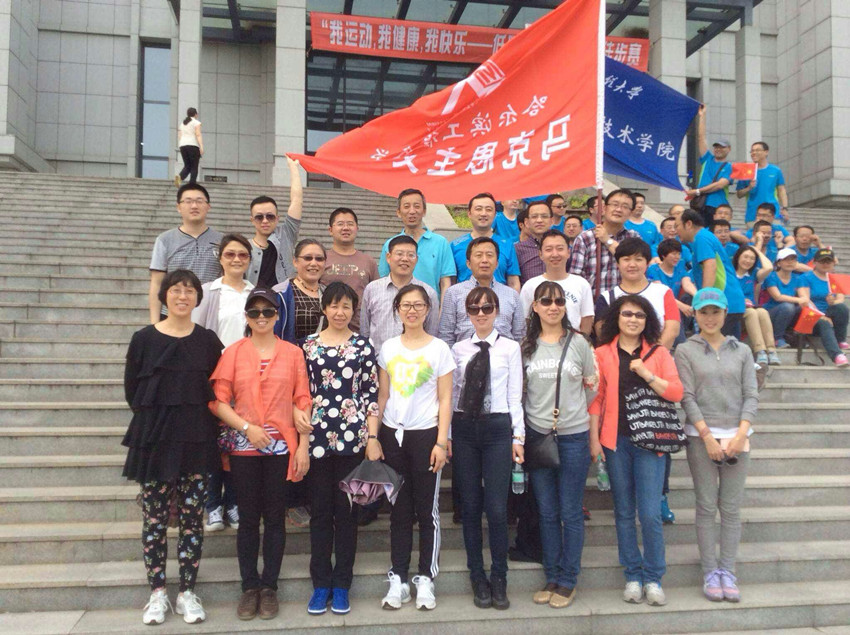 马克思主义学院红底白字的大旗迎风飘扬,马克思主义学院副院长陈红带队,院长助理杨志刚等各位教师踊跃跟进。场面热闹非凡,大家都认为,工会的徒步走活动太好了,锻炼了身体,促进了交流。