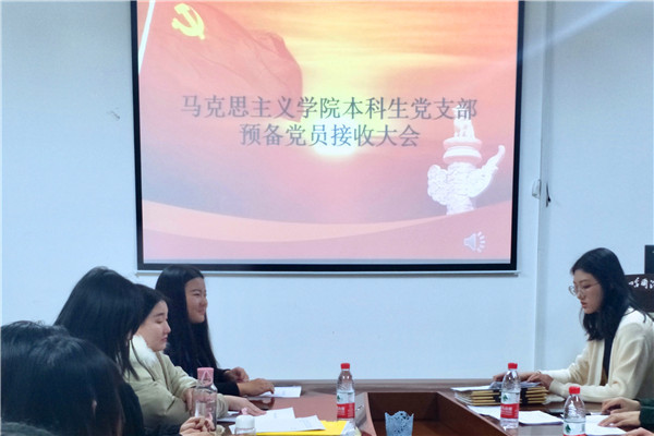 为进一步规范党员发展流程,严把党员发展质量关,12月8日下午6时30分,马克思主义学院本科生党支部于主楼437室召开支部大会,讨论接收预备党员以及预备党员转正。本次会议由支部书记邹晓蕾主持,支部全体正式党员、预备党员,以及本次被组织吸收为预备党员的发展对象参加了此次会议。