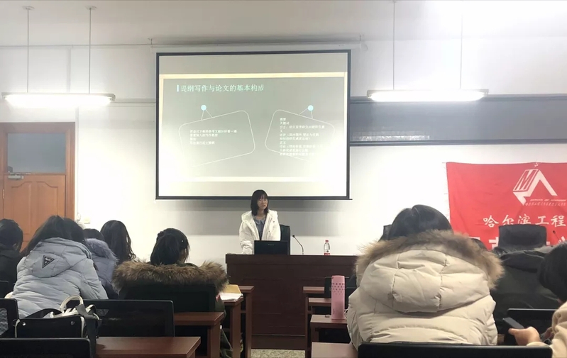 苏政睿向同学们简要介绍了提纲写作的重要性与论文的基本构成,并结合自身经验,就论文选题、文献综览等问题展开具体表述。首先,她强调论文写作时应注重提纲的搭建;其次,题目选定应尽量具体规范,从兴趣出发,具有科学性与可研究性;最后,她向同学们介绍了文献综览的构成并就参考文献的选择提出建议。