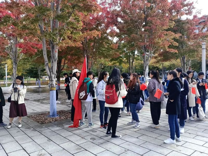 上午10时,所有参与同学在工学桥集合签到,领取小国旗并佩戴国旗标志。工作人员讲解活动规则后,夏书记一声令下,宣布活动开始。
