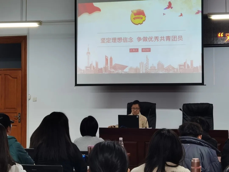 为提高团员理论水平,坚定理想信念,加强思想道德建设,2020年11月11日,马克思主义学院于主楼420举办以“坚定理想信念,争做合格团员”为主题的团课。团委书记孙舒婷担任主讲,2020级全体本科生团员参加。