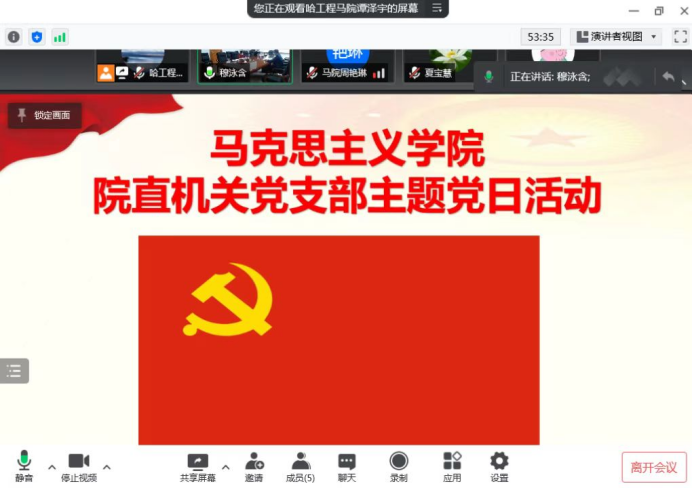 根据《哈尔滨工程大学教工党支部“对标争先”行动计划(2021~2025年)》的要求,为深入学习贯彻习近平总书记在中国人民大学调研考察时讲话精神,提升机关各办公室工作人员管理能力和服务育人意识,马克思主义学院院直机关党支部于5月4日开展主题党日活动。