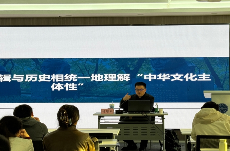 杨增岽教授以《关于理解马克思主义基本原理同中华优秀传统文化相结合的几个理论问题》为题,深刻阐述了把马克思主义基本原理同中华优秀传统文化相结合这一重大命题提出的时代缘由与重要性。他强调,应科学把握“第一个结合”与“第二个结合”的内在联系,并通过“天下为公”与共产主义、“民为邦本”与人民主体等多维度展现二者的高度契合。“第二个结合”塑造了中华文化主体性,破解了“古今中西之争”,彰显中国式现代化的文化自信,呼吁以守正创新推进这一进程。