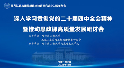 为深入学习贯彻落实党的二十届四中全会精神,推动思想政治教育理论与实践创新发展,2025年12月12日黑龙江省应用思想政治教育研究会年会以“深入学习党的二十届四中全会精神暨推动思政课高质量发展研讨会”为主题,在哈尔滨工程大学成功召开。会议由哈尔滨工程大学马克思主义学院(研究会秘书处单位)承办,邀请了全国高校知名专家、黑龙江省高校思想政治理论课第六片区、大庆携手共建单位等60余名教师共同参与。