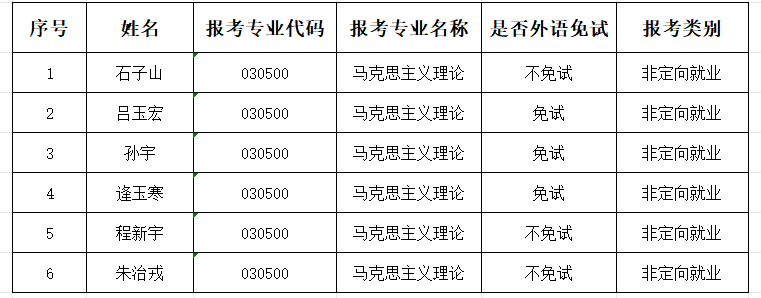 注:每位考生申请材料公示地点:马克思主义学院教务办(1号楼428室)
