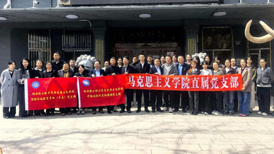 为深化树立和践行正确政绩观学习教育,更好落实立德树人使命,进一步推进“大思政课”建设,强化校际党建联建与校地协同育人,2026年4月18日,学院部分党支部与黑龙江财经学院马克思主义学院直属党支部赴肇源博物馆,以党支部共建的形式开展主题党日活动,为实践教学基地揭牌。肇源县人民政府副县长李岩,肇源县文体广电和旅游局局长井爱军,肇源博物馆馆长徐建国,黑龙江财经学院马克思主义学院党委书记冯玉龙、院长代德伟,学院党委常务副书记杨振及两院党员教师代表参加主题党日活动。